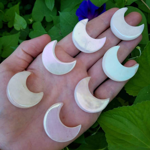 Our Aura Rose and White Quartz Moons are hand cut and polished from all natural Brazilian Rose Quartz then bonded with Titanium to give them their ...