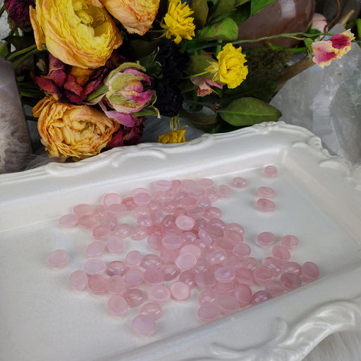 These pretty in pink Rose Quartz are a sweet dream. They are beautifully saturated, deep pinks. Our Rose Quartz Rose Cut Cabochons are sold as ran...
