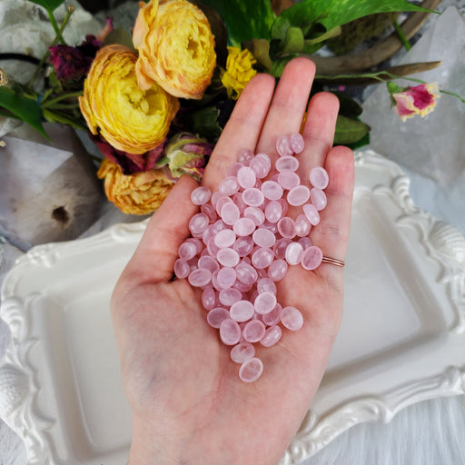 Simple and Sweet Rose Quartz looks stunning in these petite cabochons. They are hand cut and polished from all natural Rose Quartz. Our Rose Quart...