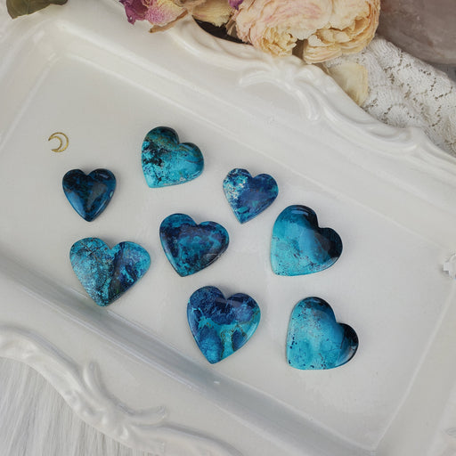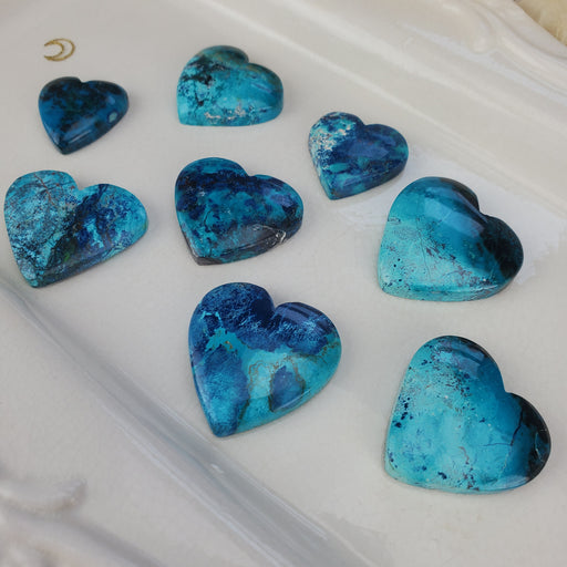 These Shattuckite Hearts are a complete dream. Deep blue inks in sweet cream. This is an absolutely beautiful material. Our Shattuckite Heart Cabo...