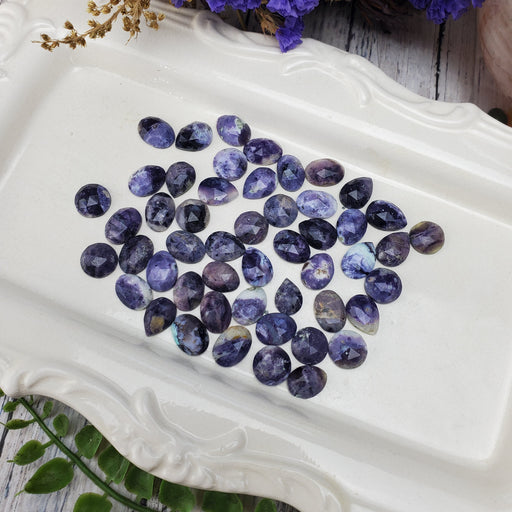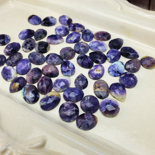 Tiffany Jasper, also known as Bertandite, is a beautiful marbled blend of fluorite and opal. Our Tiffany Jasper Rose Cut Cabochons are sold as ran...