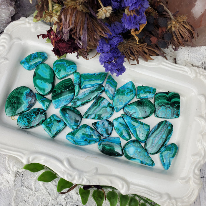 These gorgeous green and blue Chrysocolla Malachite Cabochons are a blend of earth and sea- vibrant greens crashing into deep blue.