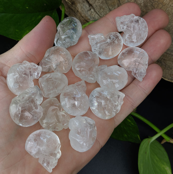 These Clear Quartz Carved Skulls are sold as randomly selected single pieces. They are roughly 1" long, 7/8" tall, and 5/8" wide. They are 3 dimensional with a flat bottom.