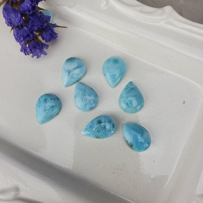 Our Larimar Cabochons are sold as randomly selected single pieces. They are approximately 15 x 20mm. They are flat backed with convex tops.