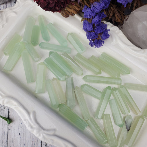 Soft, luminous blue/green Pistachio Calcite is cool to the eye on hot summer days. Our Pistachio Calcite Points are sold as randomly selected sing...