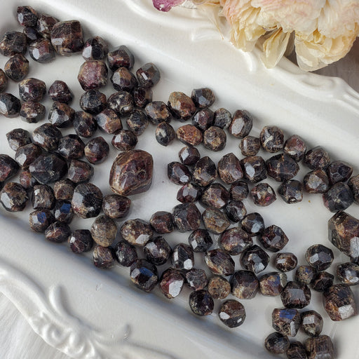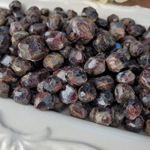 These beautiful Garnets are true to their natural form; some still wearing the earth that held the hidden. They're a brilliant deep red, many with ...