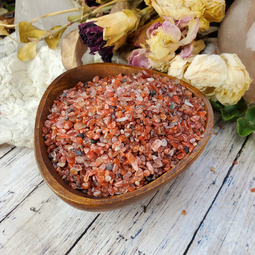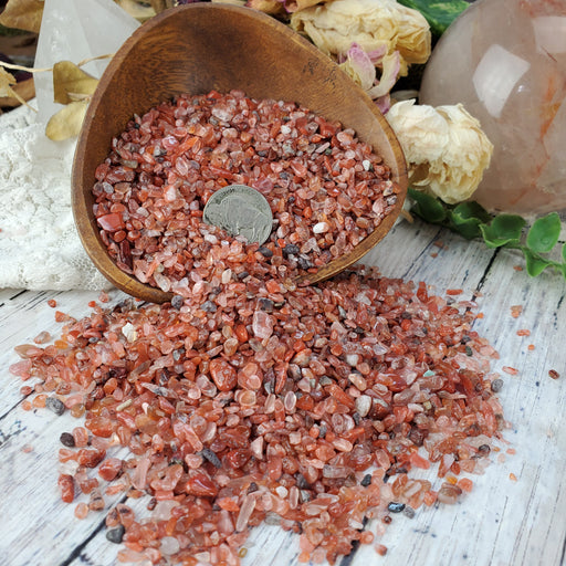 These Carnelian Chips are sold in randomly selected 50 gram bags. They are approximately 1/8''-1/4'' long. They are slightly tumbled, irregularly s...