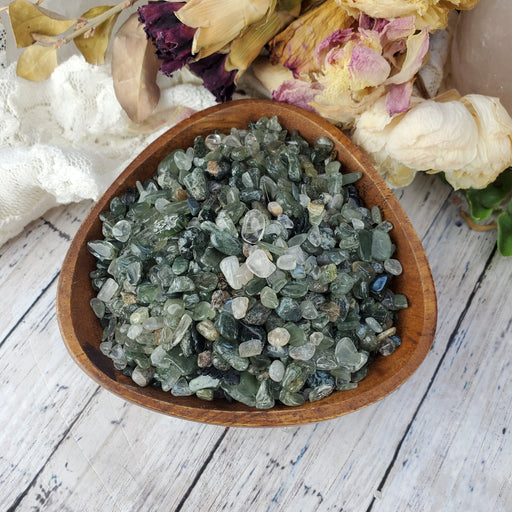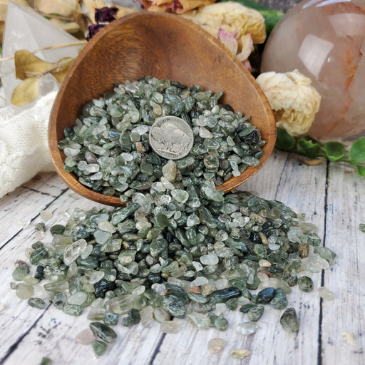 These Lodolite Chips are sold in randomly selected 50 gram bags. They are approximately 1/8''-1/4'' long. They are slightly tumbled, irregularly sh...