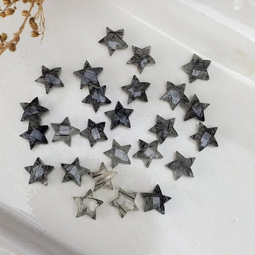 View full detailsFaceted Black Rutilated Quartz Stars, drilled 10mm