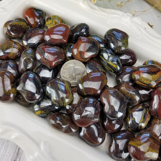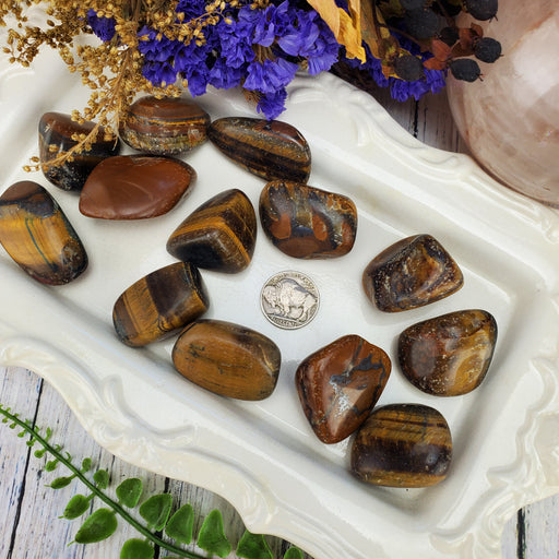 These Large Tigers Eye Tumbles are sold in randomly selected 1/2 kilo lots. These Tumbles are fully polished but some natural or manufacturing impe...