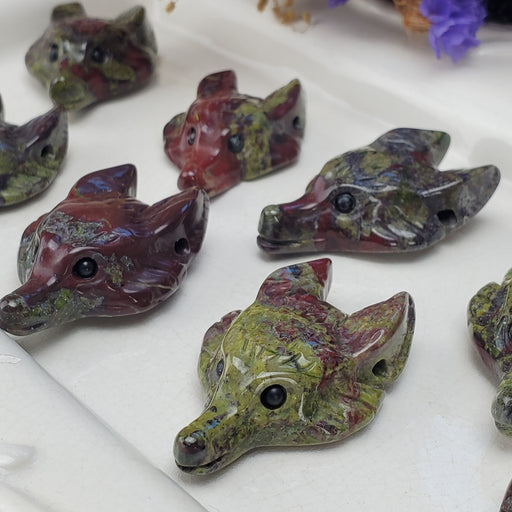 Our Dragon's Blood Wolf Head Drilled Pendant are hand cut and polished from all natural Jasper. These Dragons Blood Wolf Head Drilled Pendant are ...
