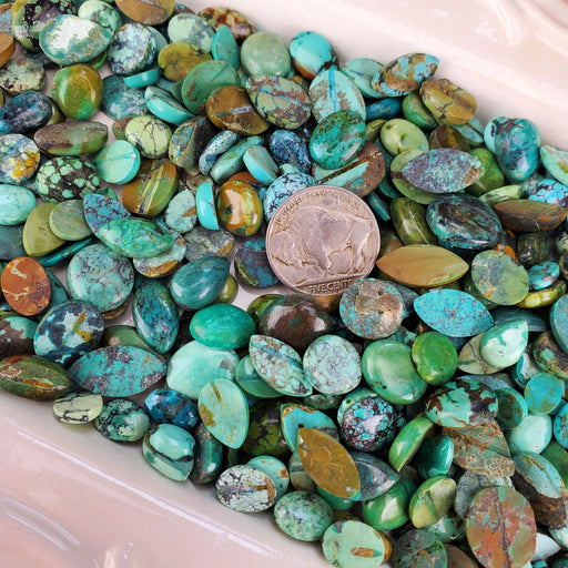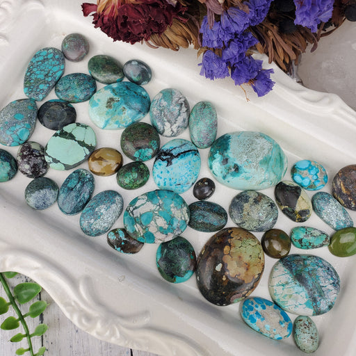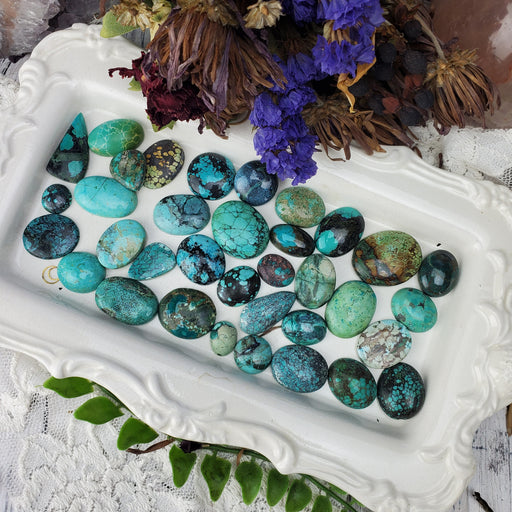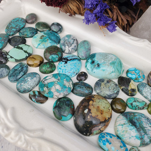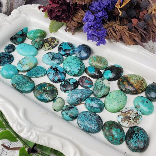 Find yourself lost, in a multicolor sea of blue and green Tibetan Turquoise. Tibetan Turquoise is so unique in color variation, and these pieces ar...