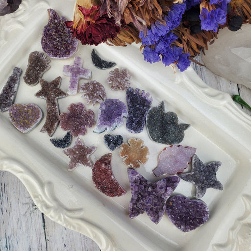 This mix of Uruguay Druzy Shapes has a little bit of everything. I call it the eye spy mix, Moons, hearts, butterflies- even feet! These are all ca...