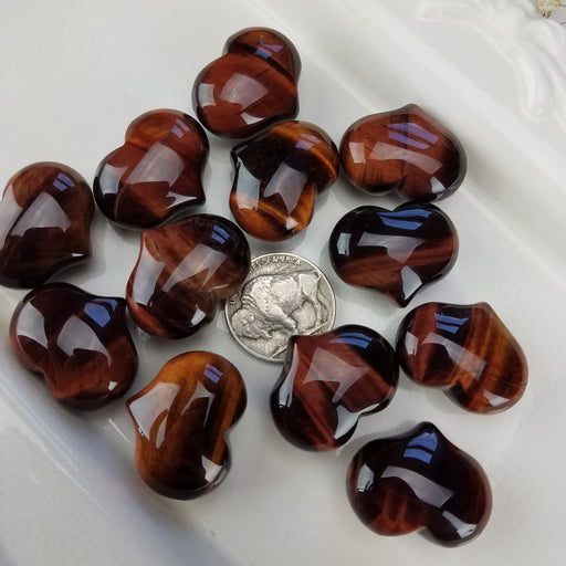 Our chatoyant Red Tigers Eye Puffy Hearts are hand cut and polished from all natural Tigers Eye. These Red Tigers Eye Puffy Hearts are sold as ran...