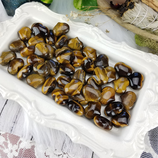 Our Tigers Eye Mini Hearts are hand cut and polished from all natural African Tigers Eye. These Tigers Eye Mini Hearts are sold as randomly selecte...