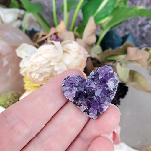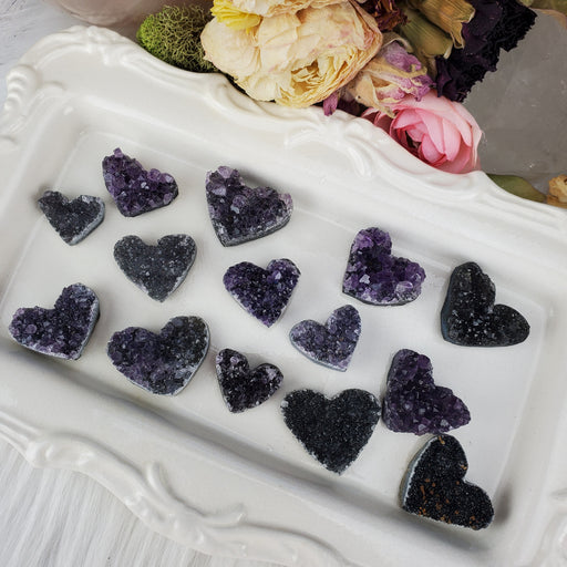 Our Druzy Heart Cabochons are hand cut from all natural, undyed Uruguay Amethyst Druzy Quartz. The colors you see come from different mineral inclu...