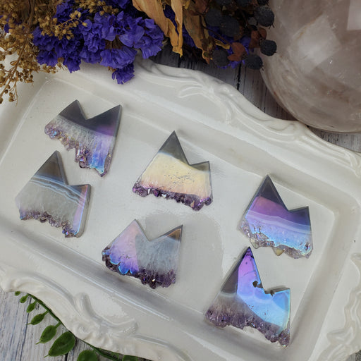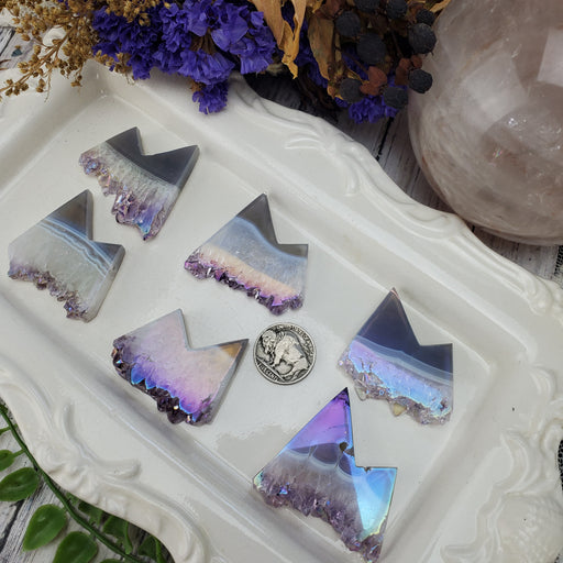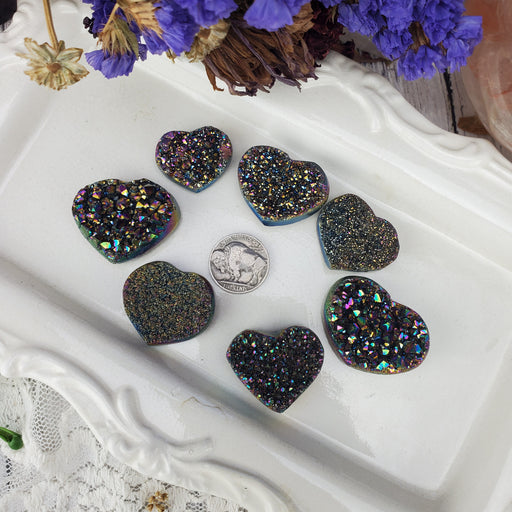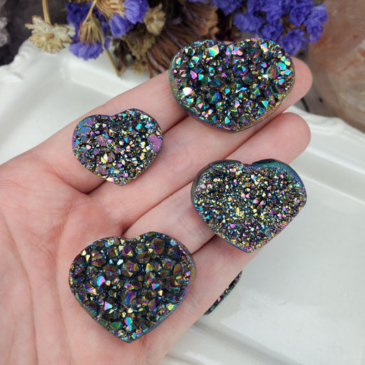 These gorgeous flashing Titanium Aura Amethyst Hearts shimmer with brilliant rainbows! This Amethyst Hearts are sold as randomly selected single pi...