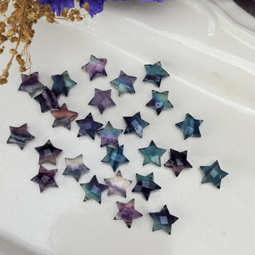 View full detailsFaceted Rainbow Fluorite Stars, drilled 10mm