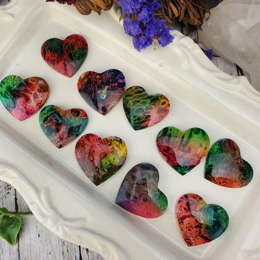 View full detailsRainbow Dyed Fossil Palm Root Hearts
