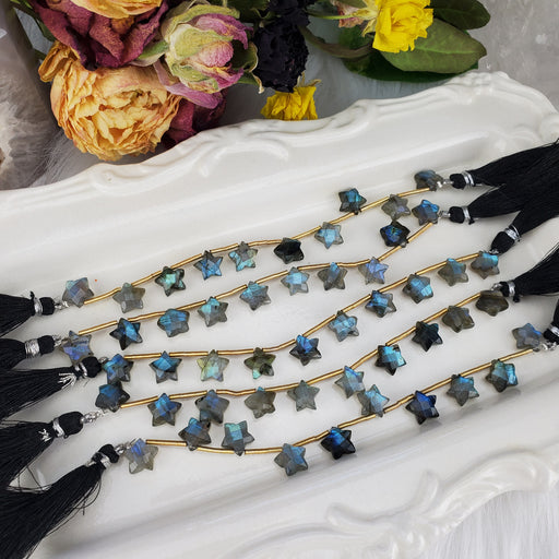 View full detailsFaceted Labradorite Stars, drilled 10mm