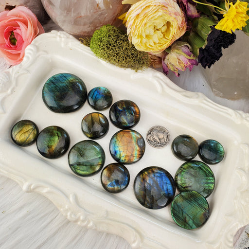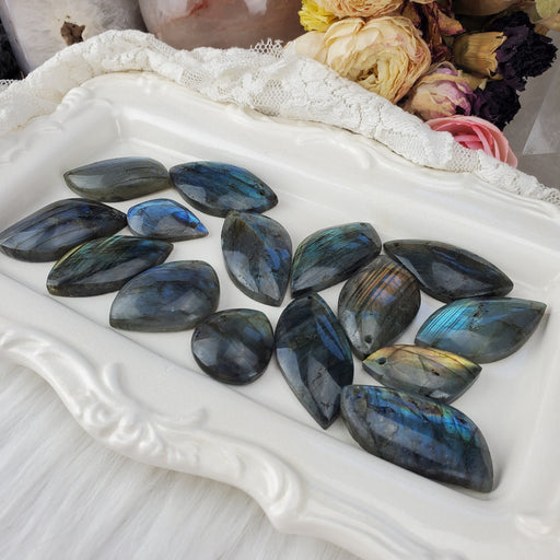 These gorgeous Labradorite Cabochons are bursting with color! These cabochons are hand-cut and polished from all natural, multi-color, Labradorite!...