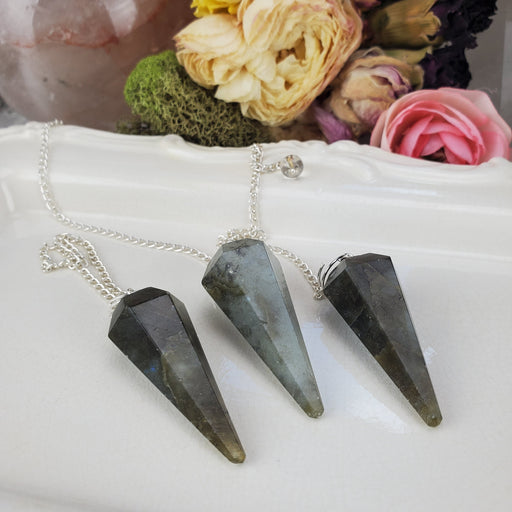 Our Labradorite Pendulums are cut and polished from all natural Labradorite. Under their many grey and green layers, these Labradorite have sneaky ...