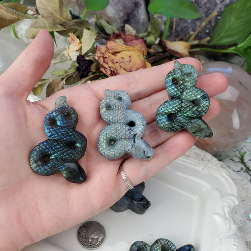 Slither and slink through the sky, these Snakes are full of Northern Light! These mythical Labradorite Snakes remind me of creature of lore. They a...