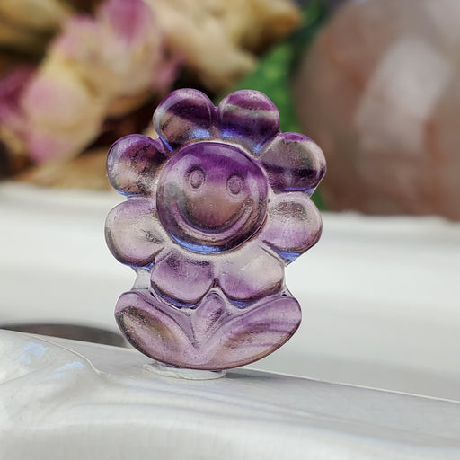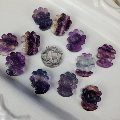 These cute Fluorite carvings capture the friendly, familiar face of summer Sunflowers. Cut and polished from all natural Rainbow Fluorite, each Sta...