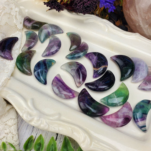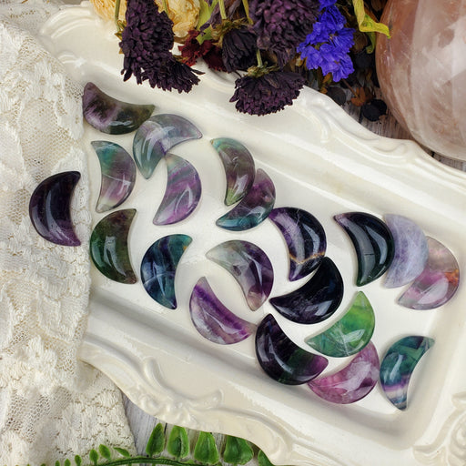 These rainbow Fluorite Moons come in peaceful and lively green and deep mysterious purple! Our Fluorite Moons are sold as randomly selected single...