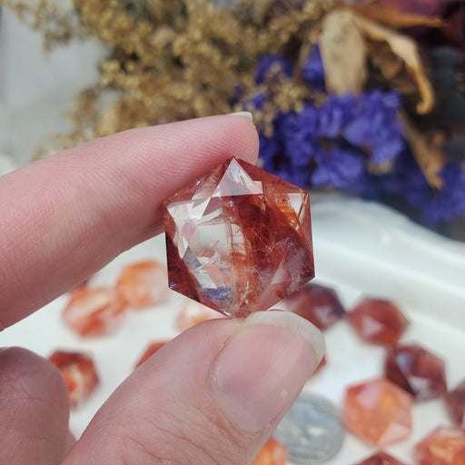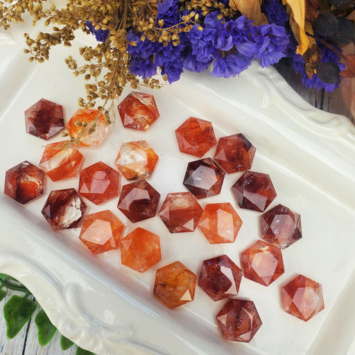 Our Fire Quartz, also known as Red Hematite Quartz, Hexagonal Coins are hand cut and polished from beautiful, bright red Fire Quartz. They have fac...
