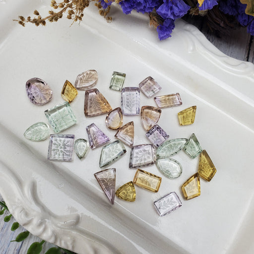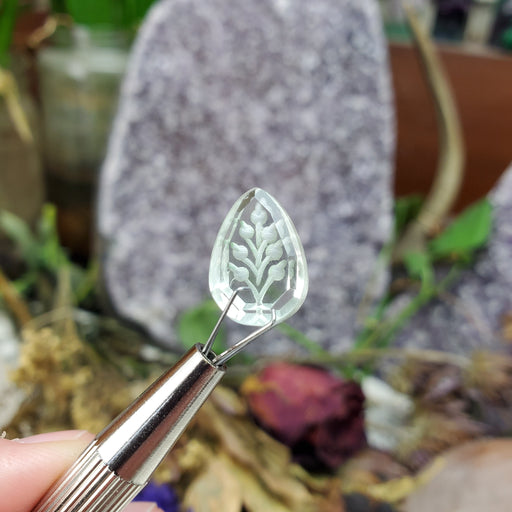 These Intaglio Quartz feature dainty botanical engravings beautifully framed with the faceted quartz. Our Intaglio Quartz Facets are sold as rando...