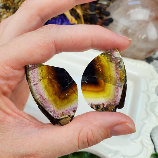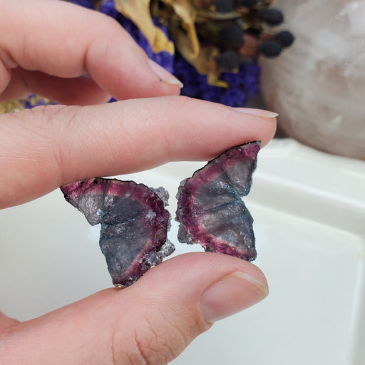 This colorful pair of of Tourmaline slices make the perfect pair of earthy, organic, butterfly wings! Our Tourmaline Butterfly Wings are approxima...