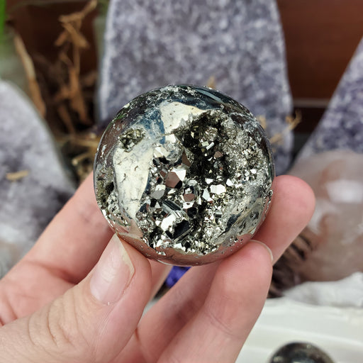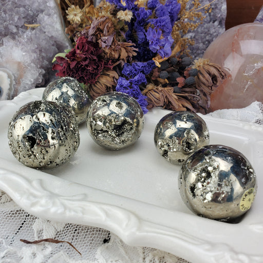 These Pyrite Spheres are approximately 1 7/8" - 2" wide. Click here to see all Spheres Click here to see all Pyrite