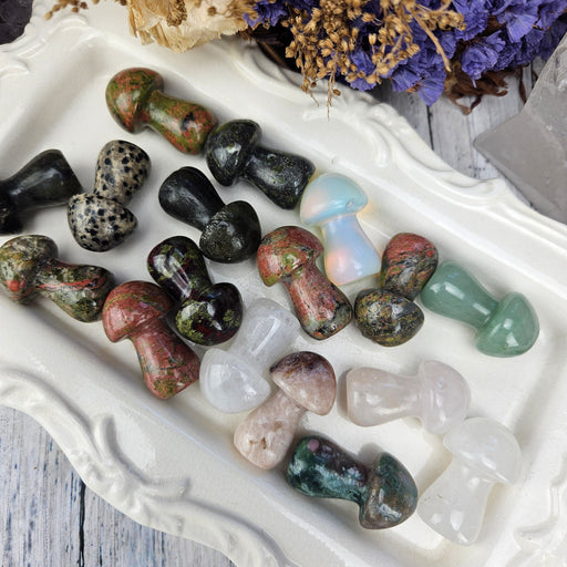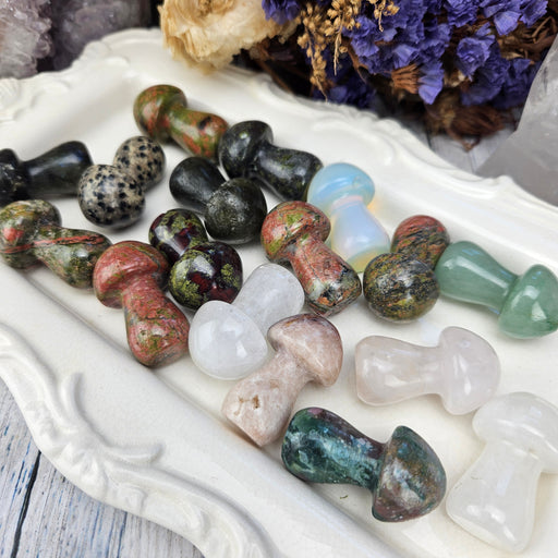 Unlock your inner forest fairy with these adorable Crystal Mushrooms! This is a mix of Jaspers, Moss Agate, Opalite, Quartz, Unakite and more! The...