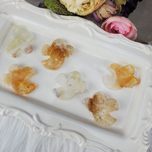 Ghosts, ghouls, and spooks- oh my! These Citrine Ghosts are hand-cut and polished from heated treated citrine. Our Citrine Ghosts are sold as rando...