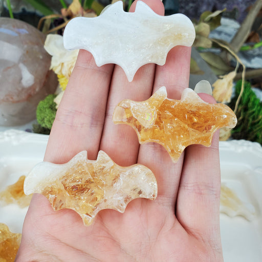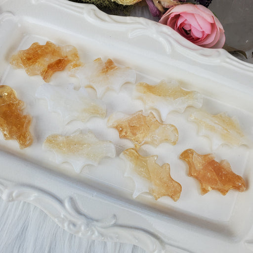 Cute and creepy, these Citrine bats are to die for! They are hand cut and polished from heat treated Citrine. Our Citrine Bats are sold as randoml...
