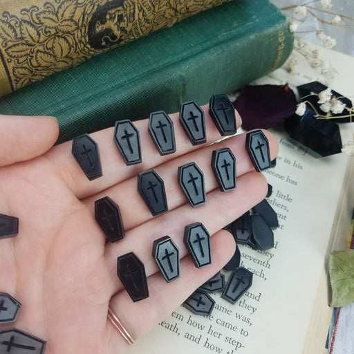 Our Mini Bone Coffins are the perfect size for rings and ear rings! Like our large grim and gothic coffins, they feature a carved cross and border ...
