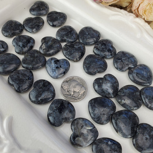 Our Larvikite Mini Hearts are hand cut and polished from all natural Larvikite. These Larvikite Mini Hearts are sold as randomly selected single pi...