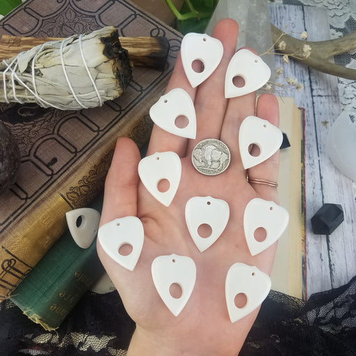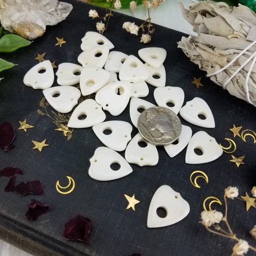 Our Planchette Cow Bone Carvings are hand cut and polished from all natural Cow and/or Buffalo bones. These spooky planchettes are drilled for easy...