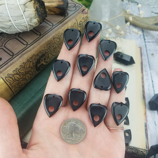Our Small Black Planchette Bone Carvings are hand cut and polished from all natural black Buffalo Horn. These small and spooky Planchettes have bee...