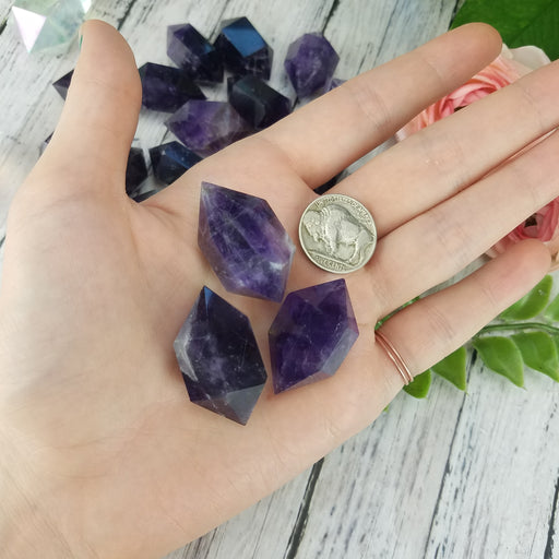 Our small Double Terminated Amethyst Points are adorable in size, yet quite elegantly cut. They are hand cut and polished from all natural Amethyst...