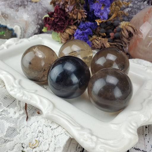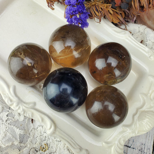 These Smoky Quartz Spheres are approximately 1 7/8" wide. Click here to see all Smoky Quartz Click here to see all Spheres