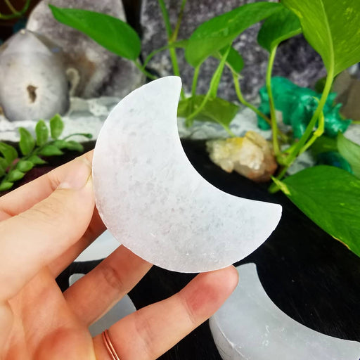 Our Selenite Moons are hand cut and polished from all natural Moroccan Selenite. Each moon is unique, luminous, and captivating. These Moroccan Se...