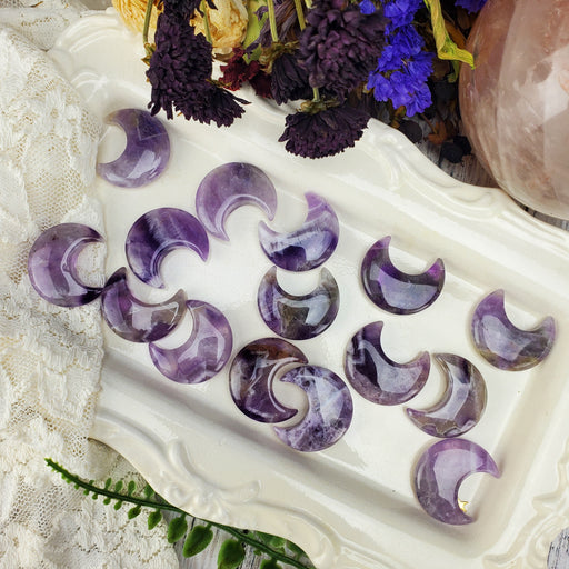 These Amethyst Moons have the perfect balance of deep purple and soft cream. Our Amethyst Moons are sold as randomly selected single pieces. They a...