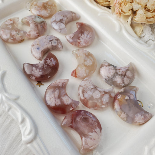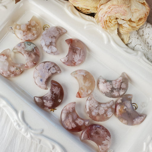 Like pastel sunsets decorated with puffs of colorful clouds, these Flower Agate Moons are soft and romantic. Our Flower Agate Moons are sold as ra...