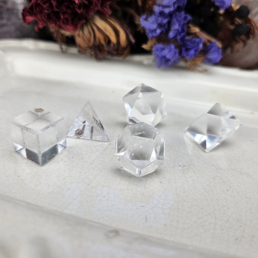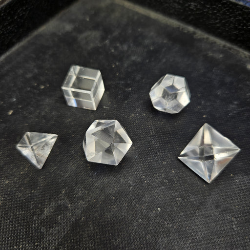 These Platonic Solid 5 Piece Sets are a perfect addition to your collection! Each set contains a tetrahedron, cube, octahedron, icosahedron, and do...