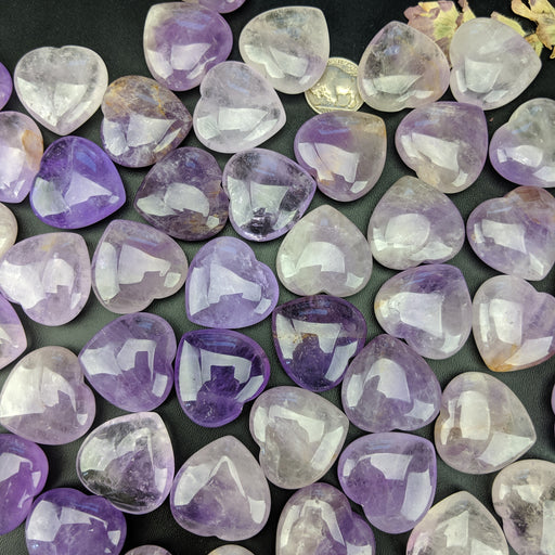 Our Amethyst Hearts are hand cut and polished from excellent quality, all natural Amethyst. These Amethyst Hearts are sold as randomly selected si...