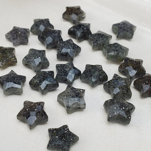 Faceted Black Sunstone Stars, drilled 10mm