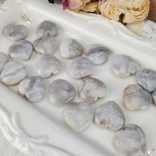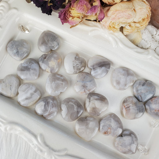 Our Grey Agate Hearts are hand cut and polished from all natural Agate. Their soft and creamy tones meld with cool grey. Our Agate Hearts are sol...