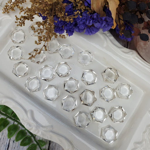 Our Quartz Hexagonal Coins are hand cut and polished from beautiful clear Quartz. They have facets on both sides and flat tops and bottoms. These Q...